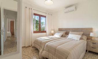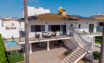 Es Barcarés 1 km von Alcudia: Sehr gemütliches, komfortables Haus "Gambaner", einseitig angebaut, renoviert. Im Ort, ruhige, sonnige Lage im Villenviertel, 200 m vom Waldrand, vom Meer, 150 m vom Strand. Zur Alleinbenutzung: grosser Garten mit Pflanzen, Schwimmbad eckig (6 x 3 m, 150 cm tief, saisonale Verfügbarkeit: 01.Mar. - 31.Dez.) mit Salzelektrolyse-Reinigungssystem. Dusche/WC im Poolbereich, Aussendusche, Sitzplatz, Laube, Pergola, Gartenmöbel, Grill. Im Hause: Internetzugang, Wireless LAN, Einstellraum für Fahrräder, Klimaanlage, Waschmaschine. Parkplatz beim Haus auf dem Grundstück. Einkaufsgeschäft 1.6 km, Lebensmittelgeschäft 1.5 km, Supermarkt 1.5 km, Restaurant 1.5 km, Bar 1.5 km, Bäckerei 1.5 km, Zentrum zu Fuss in 14 Minuten erreichbar, Bushaltestelle 1.5 km, Sandstrand "Sa Marina, Barcarés" 150 m, Felsstrand "Barcarés". Sporthafen 2.5 km, Jacht-Hafen 2.5 km, Golfplatz (18 Loch) 4 km, Surfschule 400 m, Reitstall 1.5 km. Bitte beachten: kein Fahrstuhl vorhanden. Geeignet für Familien, geeignet für Senioren. Objekt geeignet für 5 Erwachsene. Der Besitzer akzeptiert keine Jugendgruppen. Be- und Entladen am Ferienhaus möglich. Flugplatz 50 km vom Haus.