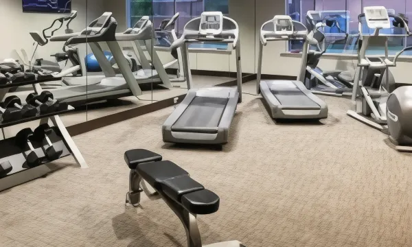 Room was spacious and the bed was comfy. Air conditioner was very loud and the weight room was ok but some machines were not working, the floor needs to have softer padding for floor exercises.