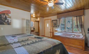 I loved the decor of this hotel. My husband and I booked last minute for a date night. The in room jet jacuzzi was great however the remote to the big screen tv wouldn’t work so it was inconvenient having to get out of the tub and walk to the front desk then once batteries were changed it still didn’t work! Fire place in room is a nice touch if it worked properly! That didn’t work either. Jackie at the front desk was amazing she did try her best to try and help but unfortunately we didn’t get the experience we had hoped. Bed was ok. Location is nice and close to the village. The front desk doesn’t open until 8am and breakfast is free but from 8-10am. We didn’t get to take advantage of that because we usually wake up early and didn’t want to wait until 8 to enjoy morning coffee and breakfast. I would give this place a second chance. There is huge potential! Love the vintage decor vibe. Please fix the remote and fireplace in room #51. Thanks