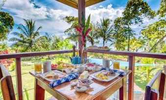 This was a great place for winding down for a couple of nights at the end of our 10-day Panama trip. We were impressed with the attentive staff who worked so hard to make things easy and comfortable. And the food at the restaurant was delicious! We thoroughly enjoyed the the open air dining room as well as the full beachfront service for lunch and drinks. The water in the area is much too rough for swimming, but we took long walks on the immaculate and isolated Bluff Beach, and when we felt like a dip, we swam in the pool. Our room with a king bed and jungle view was simple, very clean, and carefully appointed with a comfortable bed and luxury linens. They even supplied yoga mats in our room. There are board games, a ping pong table, and a billiards table for entertainment. We also appreciated the eco-friendly efforts, such as the use of solar panels and a refillable water bottle service. We would have signed up for their jungle hike tour but the guide was not available on the particular days that we were staying. We instead relaxed on the beach, being mesmerized by the crashing waves. Thank you to the staff and management who helped make our Panama vacation so memorable!
