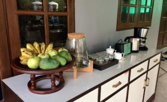 Утром завтрак на выбор , готовит сама хозяйка, оооочень вкусно 😍 сахар, кофе, молоко, чай , вода , сок , фрукты, манго , арбуз .
