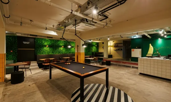 Отличный новый хостел. Блоки на 4-х. Чистое постельное белье. Полотенца за отдельную плату. Не принимают наличные, только банковские карты. Мало крючков для одежды в блоке. Отличная общая зона с баром и бильярдом.