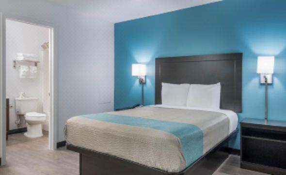 This motel has an extra $50 “deposit” which isn’t shown on the booking but is hidden in the fees. The check in process took a long time because there was a woman being trained and two other guests ahead of me. Instead of assisting to split the guests between the trainee and the trainer, the trainer was just standing there making conversation with the guests. So it took forever to check in. The trainer then told me someone is getting trained and that’s why it’s taking so long and asked me if I could guess who the trainee was. This was awkward and unprofessional. Then he looked at the photo on my ID and pulled a shocked face and said “this can’t be you!!” Well I explained the photo was taken many years previously and I had since stopped coloring my hair (it has grey streaks now) and he continued to look at the photo and shake his head in disbelief. This was unacceptable and quite rude to make a guest feel uncomfortable. The room itself wasn’t great. The bathroom door wouldn’t close, there was no iron or hairdryer and only a very thin worn blanket on the bed. The sheets were white but had discolored areas on them (gross). When I went to check out, a different person asked the trainee to “go check the room” right in front of me, which blew my mind. Did he think I had trashed their room?? How insulting. This hotel treats their guests like criminals. Maybe they do get guests who trash their rooms, but seriously…it’s not a five star hotel. Would not stay there again