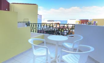 We asked to keep our room for a few extra hours due to a late flight. They wanted €40 for 4 hours – ridiculous. We decided to use the downstairs shower instead, but it was absolutely disgusting. Dead flies everywhere, no lock on the door, and totally unhygienic. The toilet next to it was just as bad – filthy, full of flies, no light, and no lock.