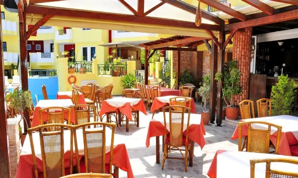 Right here goes!!!!!!!!honest view of me and my partner in there 50s going to this hotel . Turn up at hotel 3am no clear signage its your hotel just says ariadni pizza steak house no reception and many steps up and down after you've found yourself going through tables n chairs then a note and key left which assume was reception turned up at room downstairs yes basement which clearly has no balcony or pool view a brick wall towatds pool and a sm garden at rear again huge wall cant even see mountain behind it room 109. Rooms are spacious very dated aircon nice free woo lots of flys in room and as for self catering 😆 well 3 forks 2 knives a frying pan two rings a coffee machine yes coffee machine three tiny glasses and a fridge very poor .had to ask as other guests my English friends Pete and window cleaner !had a toastie machine .after setlling in decided see if change rooms so went to mmm reception and theres a strange lady who says everything is later 🤔she should not be front of house as very rude and points finger at you 😉 she has to contact daughter inlaw about everything .she had a room next door no view but was £100 euros no thanks .joker So settled in made most of it then went have shower and no hot water ask reception says later and laughs ok So then decided have sunbed around pool gets up to go and points (sunbed sunbed) had to put sunbeds back then if you eat or drink around pool she'll complain they want you to purchase there food drink from restaurant which is in a glass not clever around a pool and have to fish debris out pool in morning as cleaner don't. Then I decided as I had no sun in apartment to sit outside window n make my own balcony in morning and cleaner lol 😅 waited 5 days for room clean decided to spray plants and me with hose I was fuming then again the reception woman says why am.i sitting here I said why think ? No balcony be honest had enough and so had alot of other holiday makers and the way it seems they put effort into the pizza and steak house and not into hotel and treat guests very poor as restaurant busy every night ! We had a night flight 1am so decided try late check out but thought no chance asked anyway and guess what full and my room was empty till I left at 10 pm disgusting . If you wanna freshen up before flight good luck its fly infested no locks on doors and shower head broken and no safe luggage store . That's my honest review and why 2 stars as food in restaurant good and air con That's it nothing else enjoy