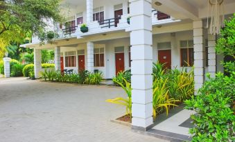 Good location and free parking. Close to the famous Kataragama Devalaya. They even arranged a offering(puja watti) for a reasonable rate and someone will bring to the doorstep of the Devalaya, no need to carry all the way. Need some renovation/maintenance for some rooms. We took three rooms, one had a kettle, not in others. Our wash- room sink water is very low, others good. Good A/C, good hot water, enough TV channels. May need good pillows, new bed-sheets. We asked morning tea at 6.30 and did not get. I had to ask and got at 7.15. Maybe a miss-communication. They offered a good rate for us. Staff makes this place clean all the time.