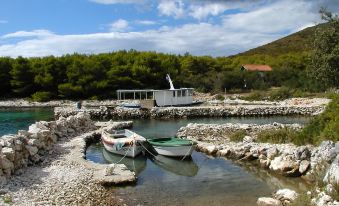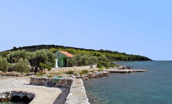 Das Haus steht auf der Südseite der Insel Pasman, in der malerischen Zincena-Bucht. Das Inselarchipel Kornati(Nationalpark) befindet sich in der Nähe. Einfamilienhaus "Rudi". Ruhige, sonnige Lage, 10 m vom Meer, 10 m vom Strand, im Grünen. Zur Alleinbenutzung: Grill. Zur Verfügung: Kanu. Frühstück auf Anfrage (extra). 3.5 km lange holprige Zufahrt bis 300 m zum Haus (Naturweg). Einkaufsgeschäft 5 km, Restaurant 5 km, Bushaltestelle 9.5 km, Felsstrand 10 m. Von Kraj ist das Haus zu Fuss in rund 1 Stunde erreichbar. Zufahrt mit enem Automobil über einen 3.5 km langen Naturweg, bis 300 m vom Haus möglich. Transfer zum Haus kann mit dem Automobil des Hausbesitzers organisiert werden. Parkplätze beim Haus des Hausbesitzers in Kraj, oder am Ende der Schotterstrasse rund 300 m vom Haus entfernt.