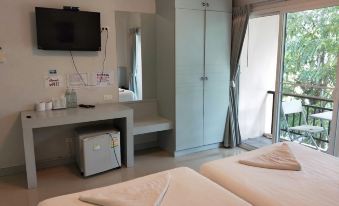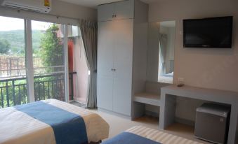 ห้องกว้าง สะอาดตา แอร์เย็นใช้ได้ มีระเบียง ห้องน้ำดูเก่า แต่มีน้ำอุ่น น้ำไหลแรงดี