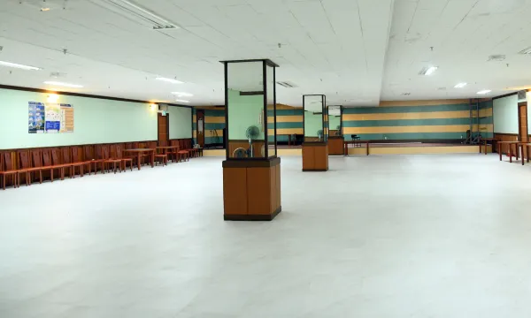 Ein Bankettsaal und ein Verkaufsautomat gehören zur Austattung.