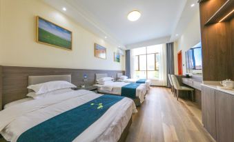 地理位置很高,離八卦城卦心很近,步行四五分鐘就到,樓下附近吃飯很方便,門前停車很方便,工作人員老闆娘很熱情,這個季節價格略高但是可以理解,旅遊旺季,關鍵住的舒服。