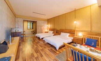 A mere 10-minute walk from the bustling resort area, with pastoral scenery along the way, yet here not a sound of traffic or crowds disturbs the peace. As night falls, the bright moon hangs high in the sky; look up to see twinkling stars, close your eyes to catch a faint scent of books, bow your head to hear the gurgling stream, and let the strains of the guqin (traditional Chinese zither) linger in your ears...