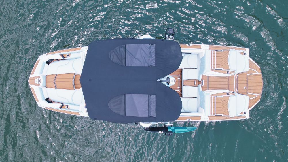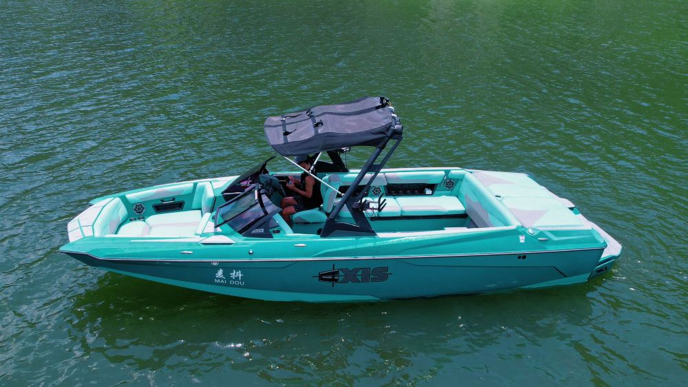 Es handelt sich um ein professionelles Wellenboot, das ozeanähnliche Wellen erzeugt, auf denen Surfen gleiten können.