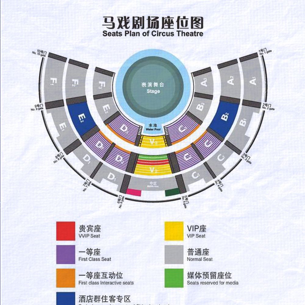 · Beim Chimelong International Circus in Guangzhou gilt das Prinzip "Ein Sitzplatz, ein Ticket". Alle Besucher müssen ein Ticket erwerben, um die Vorstellung zu besuchen.