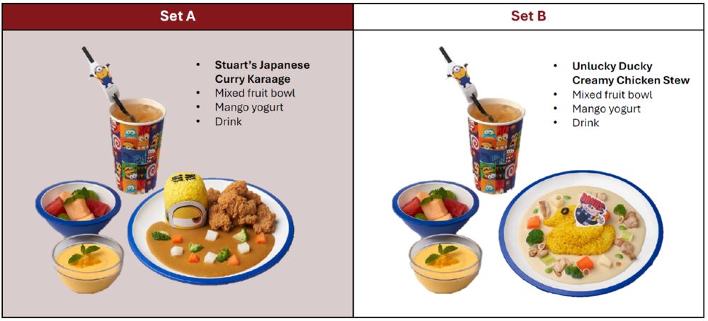 Wähle eines der beiden Minions-Themenpakete oder nutze den Essensgutschein für einen Rabatt von 25 SGD bei einer Bestellung in einem beliebigen Restaurant.