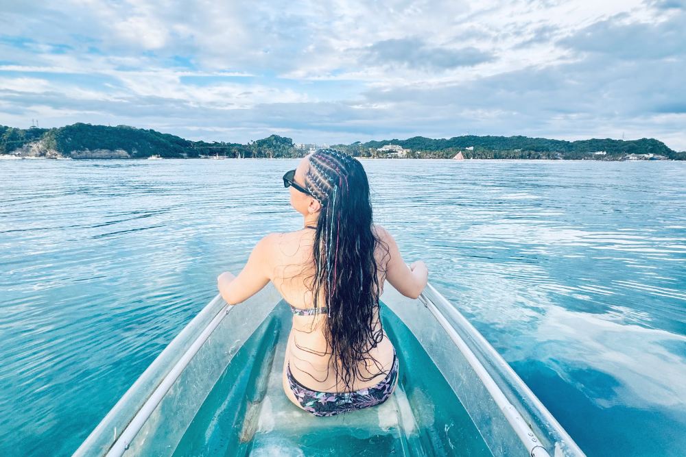Gleiten Sie über Boracays kristallklares Wasser in einem einzigartigen transparenten Kajak – perfekt für atemberaubende Fotos und ruhige Momente.